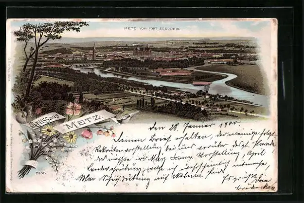 AK Metz, Ortsansicht vom Fort St- Quentin, Blumengruss