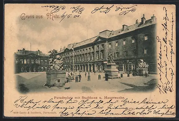 AK Metz, Paradeplatz mit Stadthaus und Hauptwache