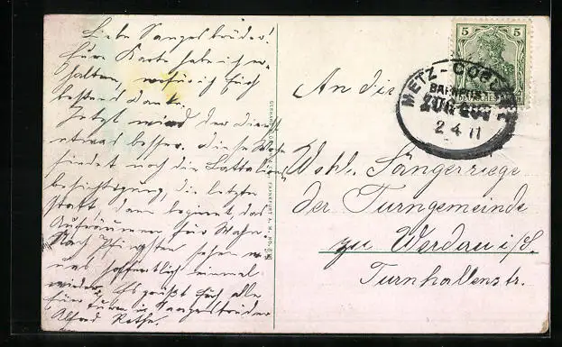 gelaufen 1911, Stempelspur, sonst guter Zustand