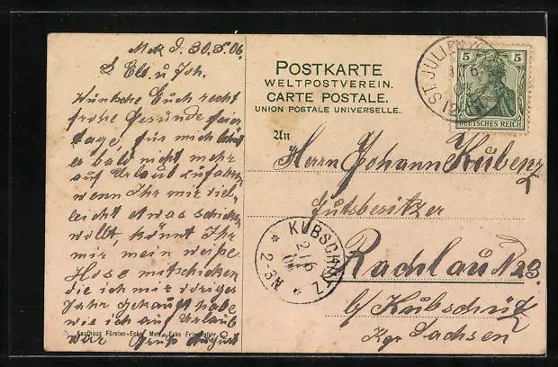 alte Ansichtskarte, gelaufen 1906, Albumspuren, guter Zustand
