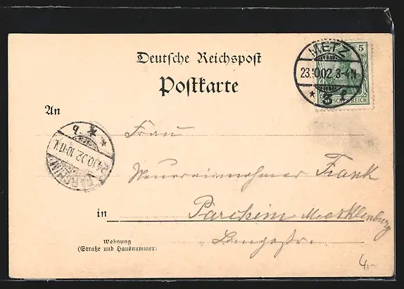 gelaufen 1902, Eckknick unten li., guter Zustand