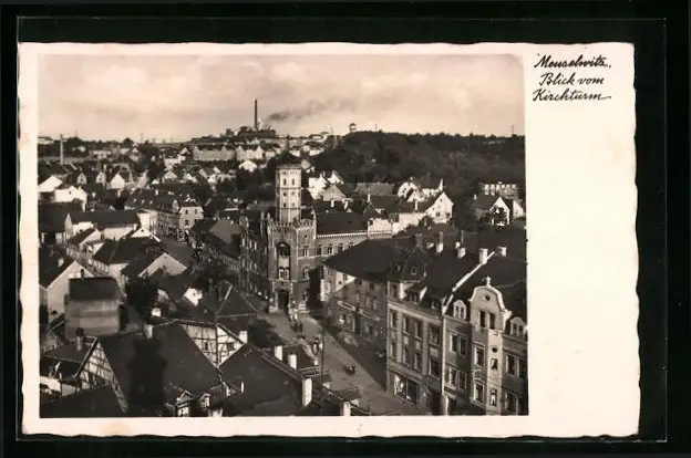 AK Meuselwitz, Blick vom Kirchturm auf den Ort