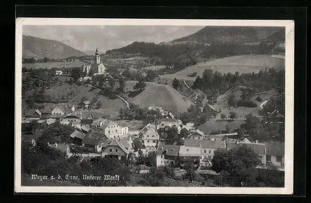 AK Meyer a.d . Enns, Unterer Markt mit Kirche