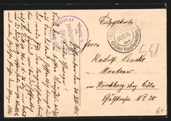alte Ansichtskarte, gelaufen 1915, Eckknick unten re., guter Zustand