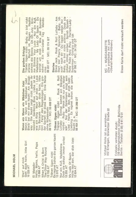 AK Michael Holm, Portrait des Musikers mit Autograph