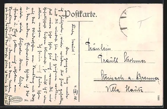 alte Ansichtskarte, gelaufen 1908, Briefmarke entfernt, rückseitig Oberflächenschaden, guter Zustand