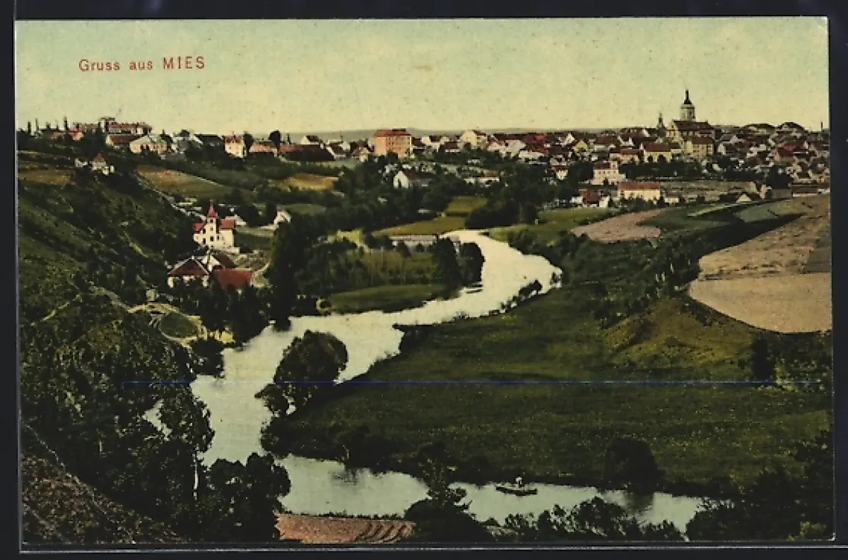 AK Mies, Flusspartie mit Ortsansicht