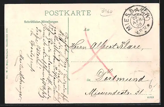 alte Ansichtskarte, gelaufen 1908, guter Zustand