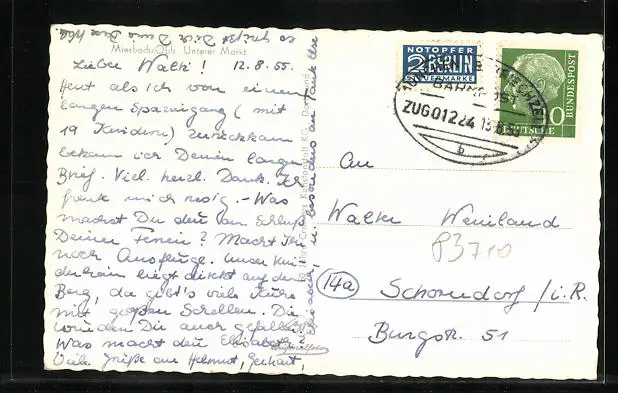 alte Ansichtskarte, gelaufen 1955, guter Zustand