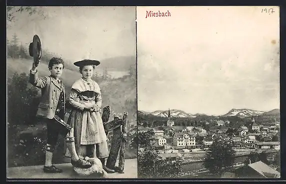 AK Miesbach, Ortsansicht und Kinder in Trachten