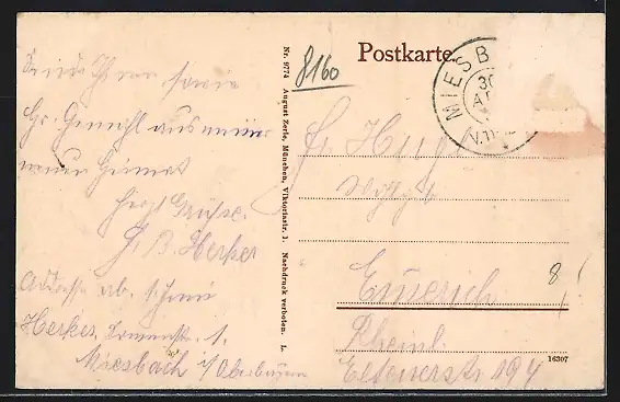 alte Ansichtskarte, gelaufen, Briefmarke entfernt, rückseitig Oberflächenschaden, guter Zustand