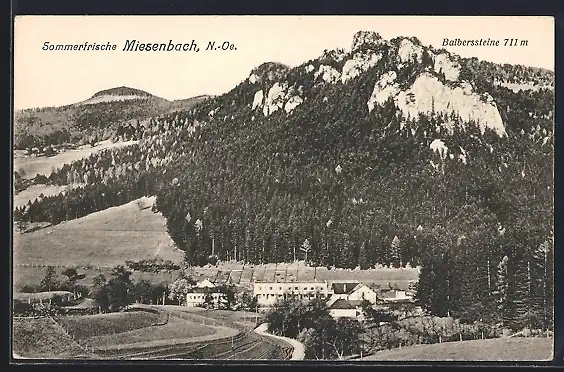 AK Miesenbach /N.-Oe., Ortsansicht gegen die Balbersteine