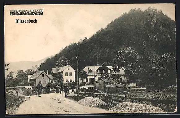 AK Miesenbach, Strassenpartie am Ortseingang