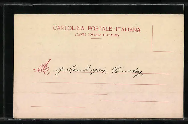 Personenbezogene Daten auf der Rückseite der Karte wurden durch blauen Textmarker unkenntlich gemacht. Die blauen Stellen sind auf die Vorderseite durchgeweicht und wirken sich negativ auf das Postkartenfoto aus