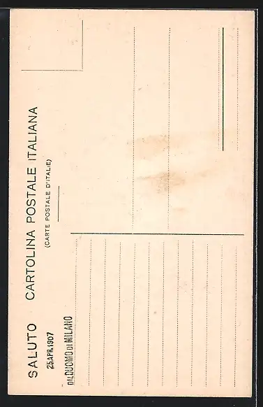 Personenbezogene Daten auf der Rückseite der Karte wurden durch blauen Textmarker unkenntlich gemacht. Die blauen Stellen sind auf die Vorderseite durchgeweicht und wirken sich negativ auf das Postkartenfoto aus