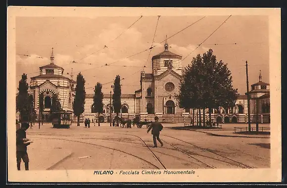 AK Milano, Facciata Cimitero Monumentale, Strassenbahn
