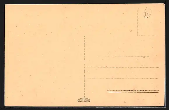 Personenbezogene Daten auf der Rückseite der Karte wurden durch blauen Textmarker unkenntlich gemacht. Die blauen Stellen sind auf die Vorderseite durchgeweicht und wirken sich negativ auf das Postkartenfoto aus