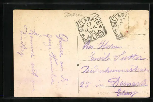 alte Ansichtskarte, gelaufen, Briefmarke entfernt, rückseitig Oberflächenschaden, Bugspuren oben li., leicht fleckig, sonst guter Zustand