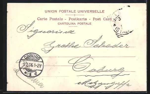 alte Ansichtskarte, gelaufen 1906, Briefmarke entfernt, rückseitig Oberflächenschaden, Albumspuren re., Stempelspur, guter Zustand
