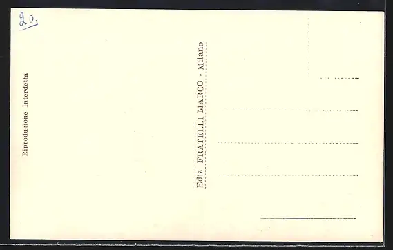 Personenbezogene Daten auf der Rückseite der Karte wurden durch blauen Textmarker unkenntlich gemacht. Die blauen Stellen sind auf die Vorderseite durchgeweicht und wirken sich negativ auf das Postkartenfoto aus