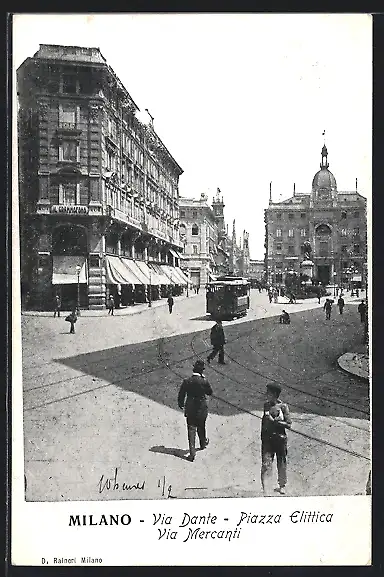 AK Milano, Via Dante, Piazza Elittica, Via Mercanti, Strassenbahn