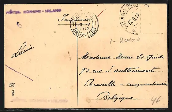 gelaufen 1912, Briefmarke entfernt, guter Zustand