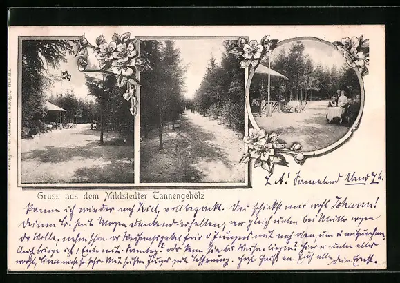 AK Mildstedt, Gasthaus Mildstedter Tannengehölz, Waldweg