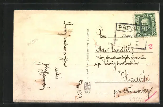 gelaufen 1927, leicht fleckig, sonst guter Zustand