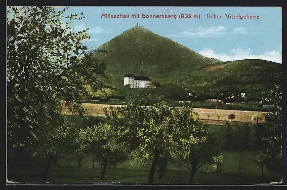 AK Milleschau /Böhm. Mittelgebirge, Ortsansicht mit Donnersberg