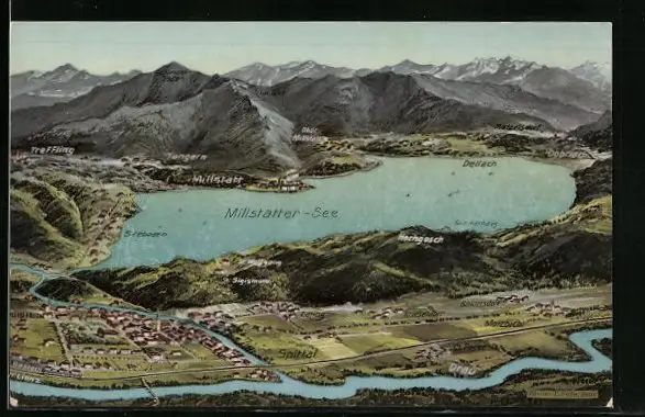 AK Millstatt, Millstatter-See mit Spittal, Drau und Tangern