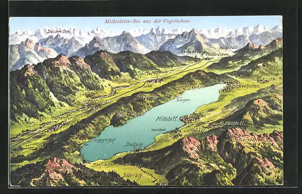 AK Millstatt, Seepartie aus der Vogelschau