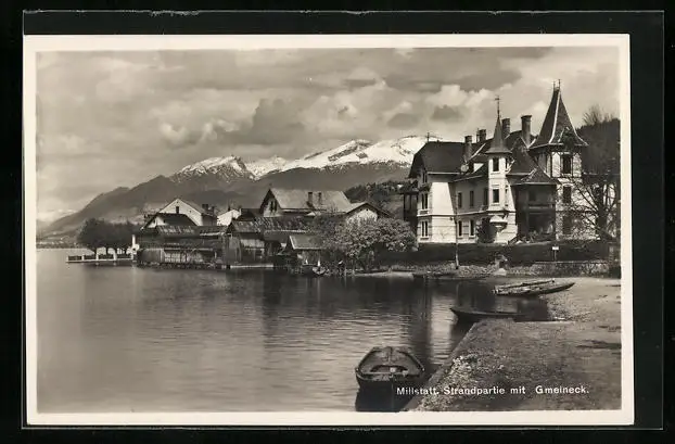 AK Millstatt, Strandpartie mit Gmeineck