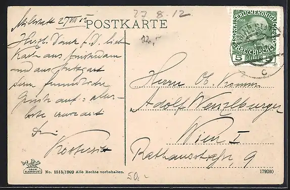 gelaufen 1912, Eckknick li. oben, guter Zustand