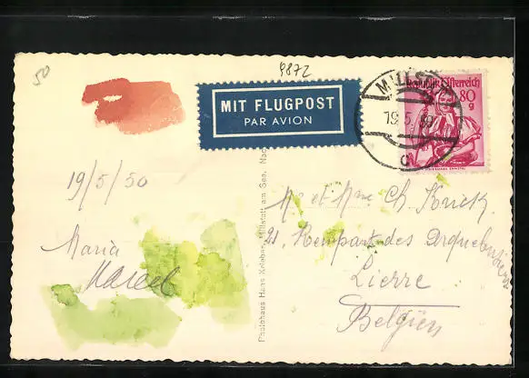 gelaufen 1950, Eckknick oben re., guter Zustand