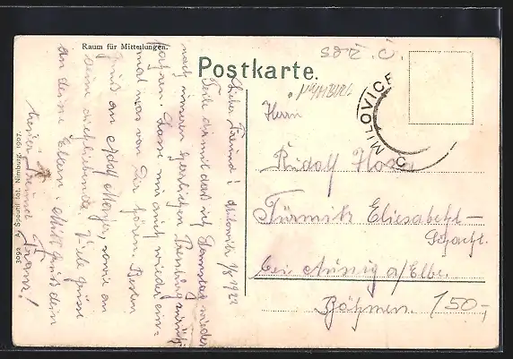 alte Ansichtskarte, gelaufen, Briefmarke entfernt, guter Zustand