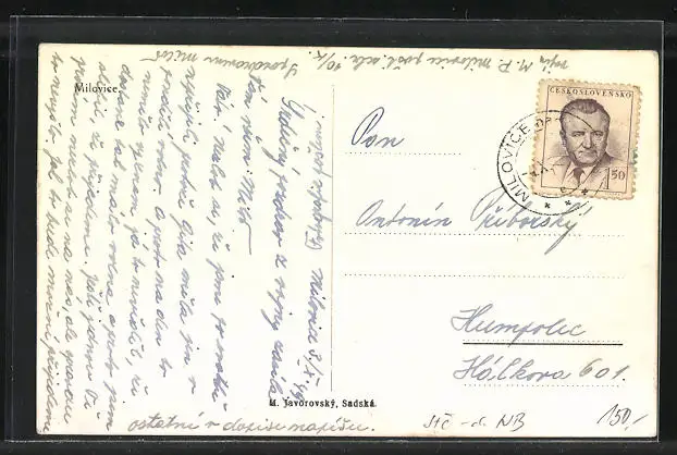 AK Milowitz / Milovice, Ortsansicht mit Strassenpartie