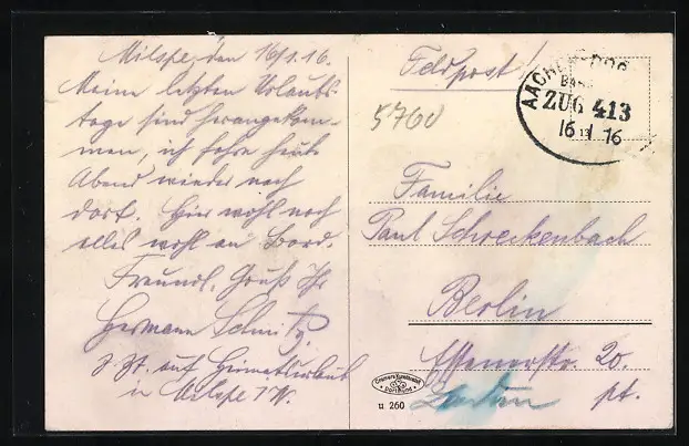 alte Ansichtskarte, gelaufen 1916, Einriss oben re., guter Zustand
