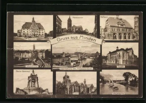 AK Minden, Marienkirche, Rathaus, Theater