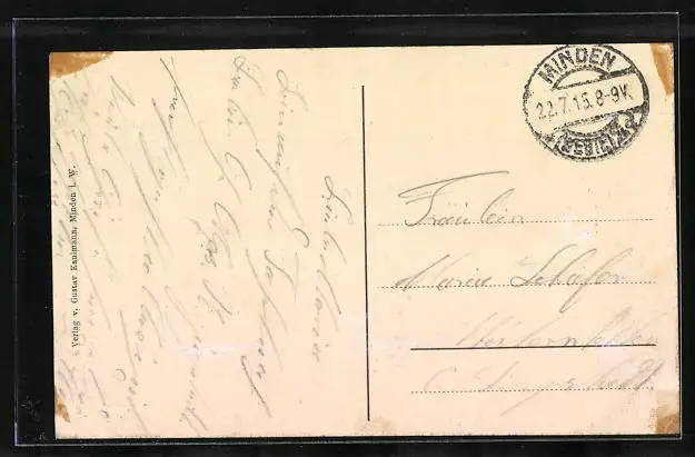 gelaufen 1915, rückseitig Klebe- und Papierreste, guter Zustand
