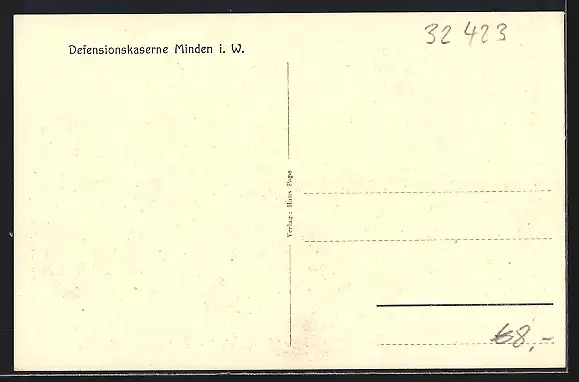 AK Minden i. W., Defensionskaserne - Gebäudeansicht vom Feld aus