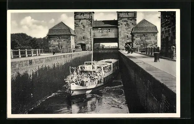 AK Minden i. W., Fähre passiert die Schachtschleuse