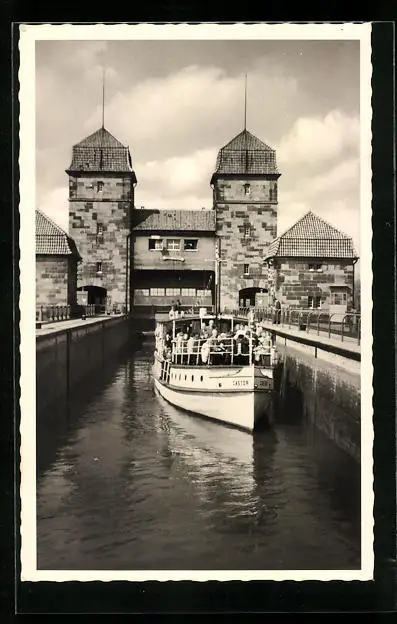 AK Minden i. W., Fahrgastmotorschiff Castor in der Schachtschleuse