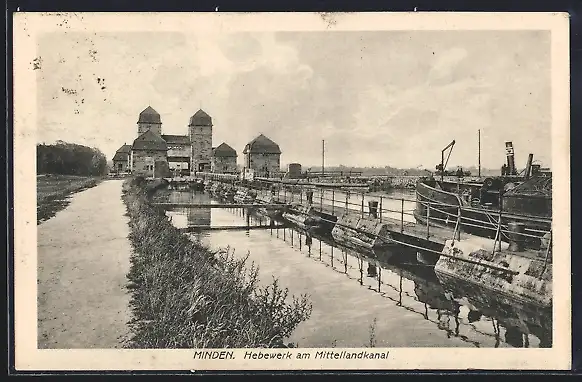 AK Minden i. W., Hebewerk am Mittellandkanal