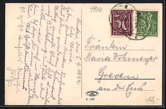 alte Ansichtskarte, gelaufen 1922, Stempelspur, guter Zustand