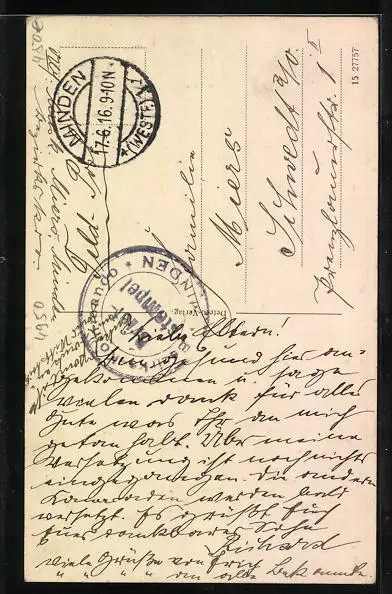 alte Ansichtskarte, gelaufen 1916 als Feldpost, Stempelspur, guter Zustand