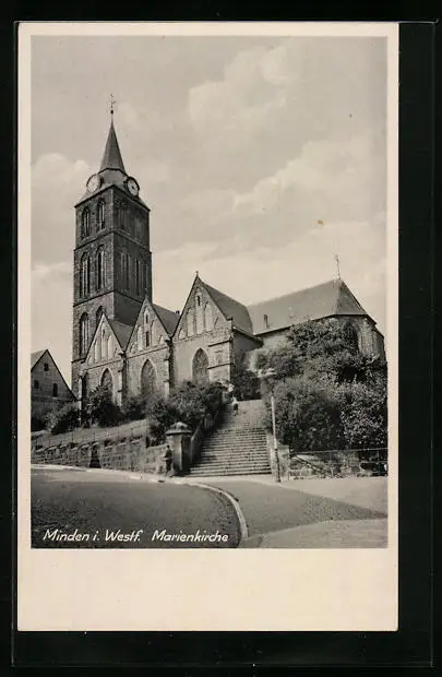 AK Minden i. W., Marienkirche mit Strassenpartie