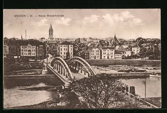 AK Minden i. W., Neue Weserbrücke und Stadt