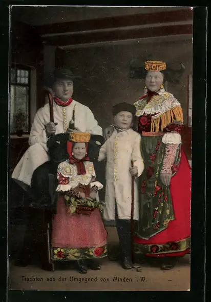 AK Minden i. W., Paar mit zwei Kindern in Tracht
