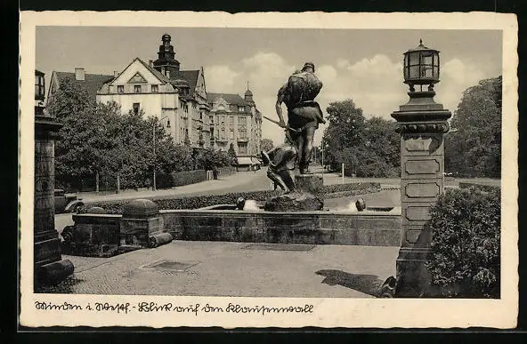 AK Minden i. W., Partie am Denkmal, Blick auf die Stadtvillen