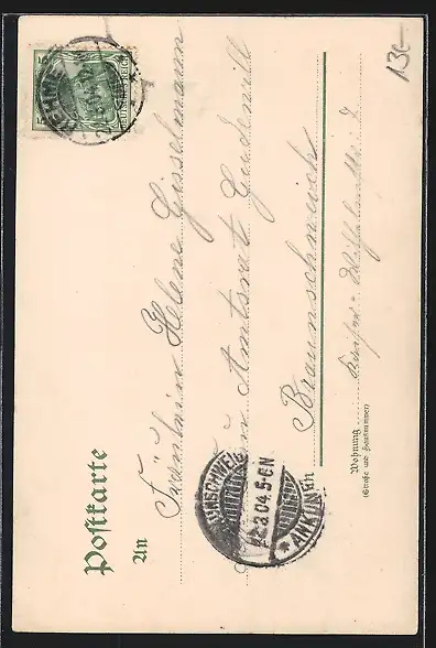 alte Ansichtskarte, gelaufen 1904, Stempelspur, guter Zustand
